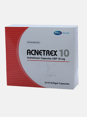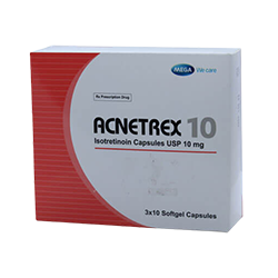 Acnetrex 10 mg is reduces sebaceous gland size, sebaceous gland activity, sebum secretion.